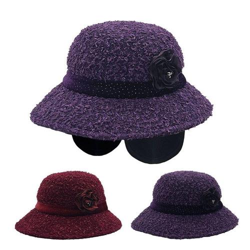 TEMU 우아한 영국 스타일 여성용 빈티지 페도라 모자 - 꽃 장식 - 80% 아크릴 20% 울 블렌드, 자외선 차단, 니트, 비세탁, 딱딱한 모양, 깃털 없음, 새해 기념 테마, 다양한 색상