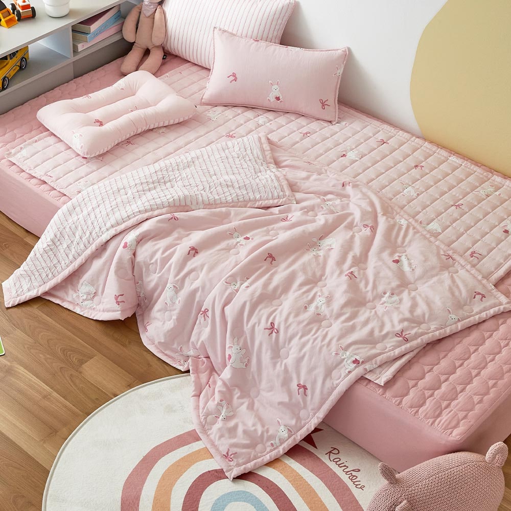 마미허그 소프트워싱 쁘띠래빗 낮잠이불 100x150 핑크