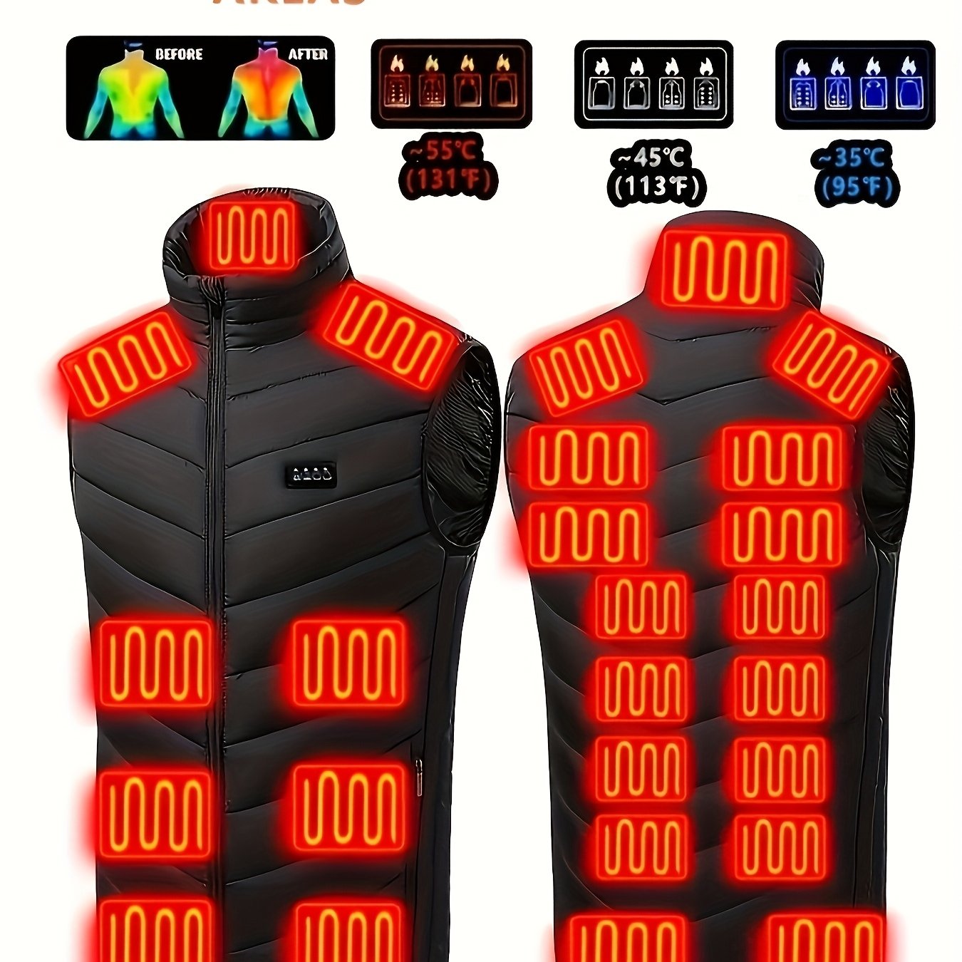 TEMU 4개의 온도 조절 스위치와 27개의 온도 구역을 갖춘 가을/겨울용 가열 조끼입니다. 이 스타일리시한 가열 재킷은 민소매이며, 야외 레저, 외출, 야외 작업 및 여행에 적합합니다. (비고: 배터리 포함)