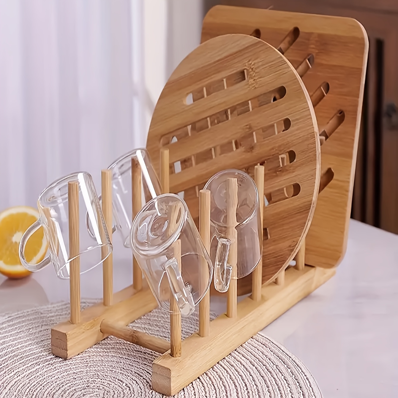 TEMU 주방 식기, 그릇, 컵, 냄비 뚜껑, 도마 정리를 위해 설계된 나무 접시 받침대. 책장으로도 사용하기에 적합합니다.