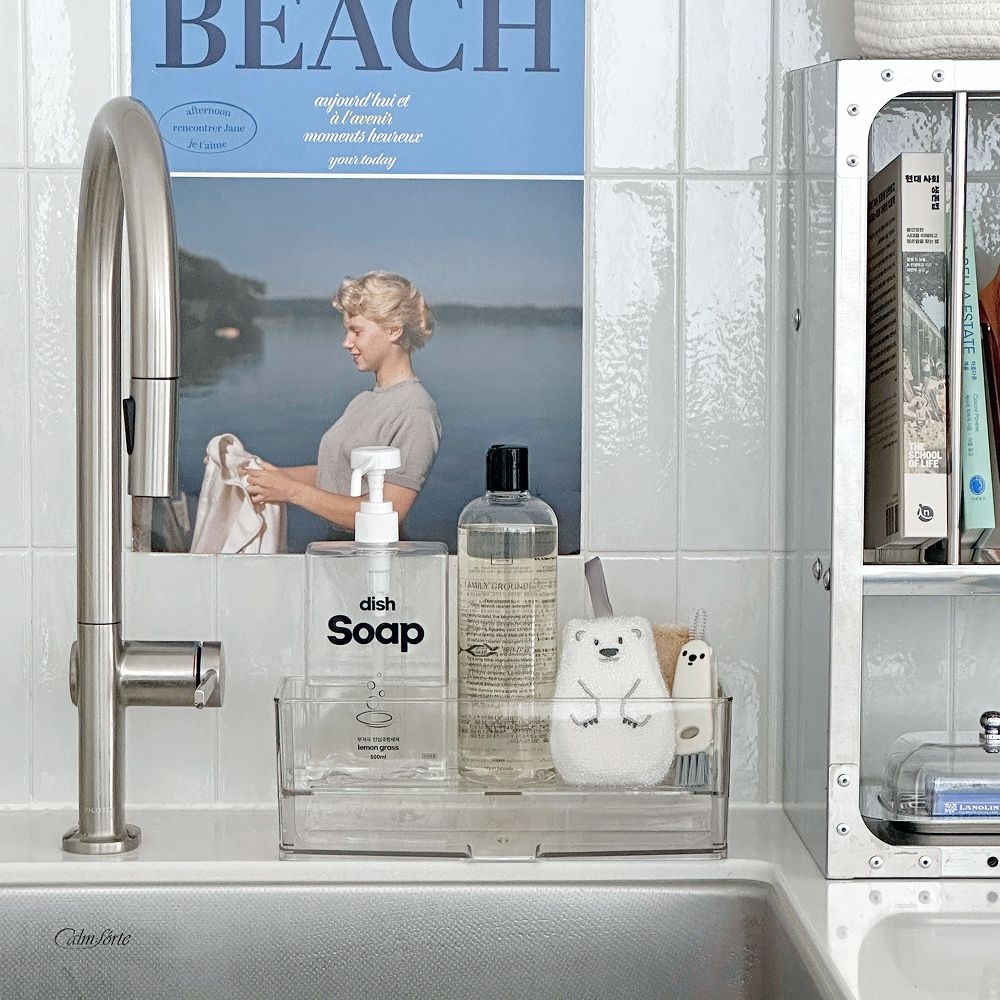 투명해 와이드 싱크대 수세미랙 물빠짐 거치대 주방세제선반