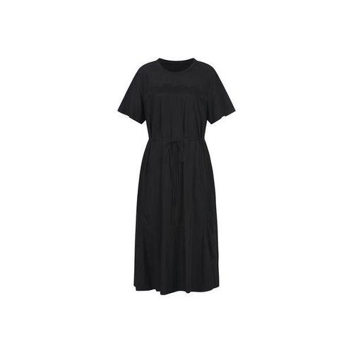 TEMU 루즈핏, 단색, 반팔, 라운드넥 여성용 드레스, 플로잉 미디 길이 디자인