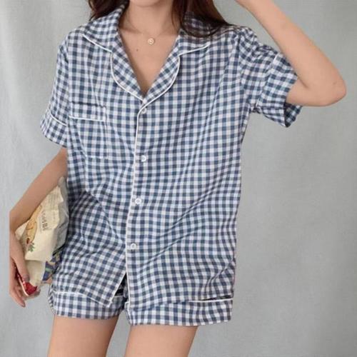 [신상오픈런]여성 쿨링 체크 잠옷 세트 반팔 반바지 홈웨어 (39070703)