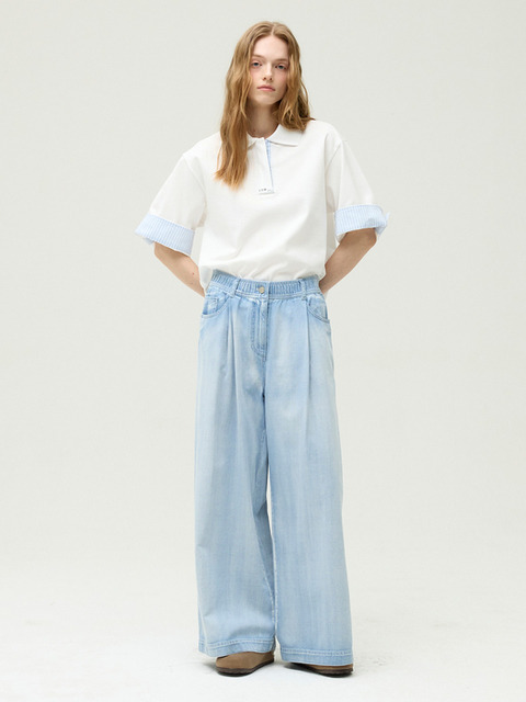 [이비엠 (에디션 바이 미샤)] 밴딩 와이드 워싱 데님 팬츠 EMQ3DPT030