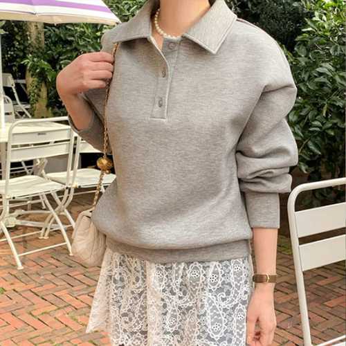코코세븐 여성 빅사이즈 무지 라운드 셔링 소매단 긴팔 티셔츠 L XL