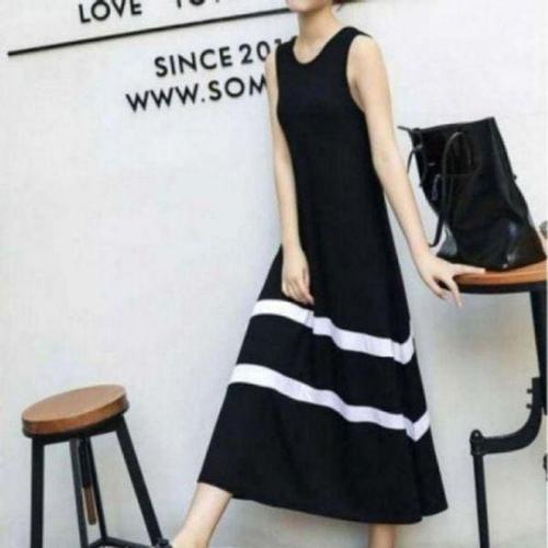 [에이치플러스몰]면 베이직 2컬러 패턴 나시 올데이 끈 롱 여름 바캉스