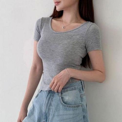 [에이치플러스몰]여름 베이직 여성 크롭 면 올데이 기본 반팔 티셔츠