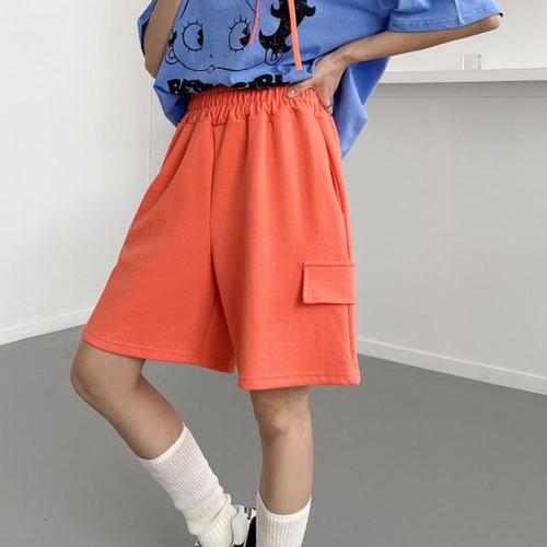 |CHP8D68|여성용 탄탄한 코튼 무지 컬러 카고 밴딩 반바지 2포켓