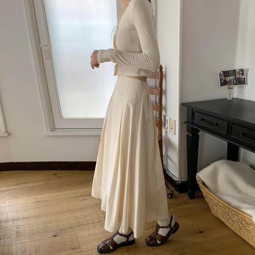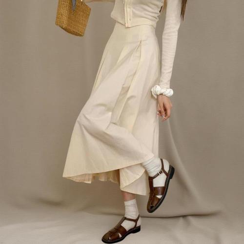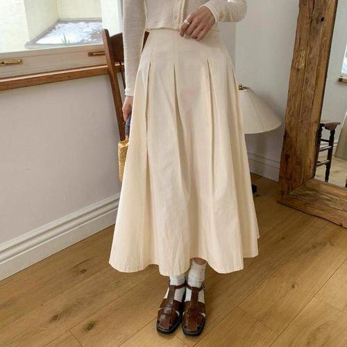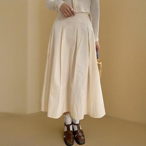 [신상오픈런]여성용 면 바스락 지퍼 핀턱 플레어 롱 치마
