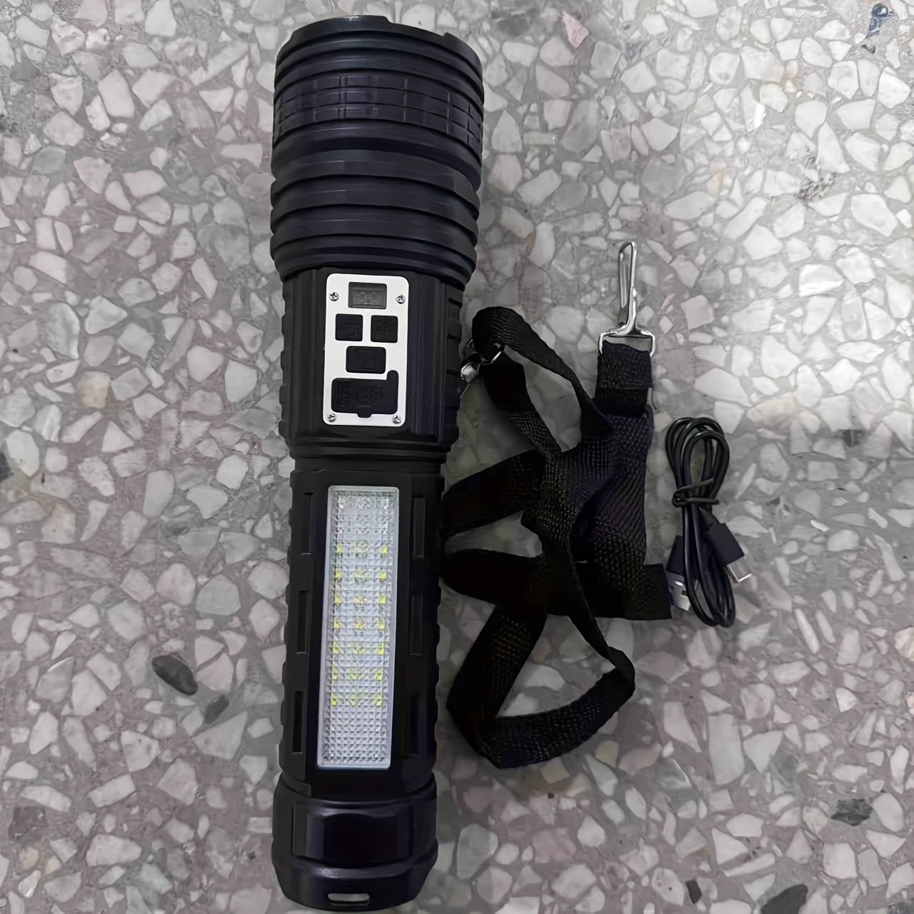 TEMU 다기능 야외용 LED 손전등, 충전식, 조절 가능한 초점, 멀티컬러 사이드 라이트, COB, USB 케이블, 캠핑, 낚시, 하이킹에 완벽한 아웃도어 액세서리, 야외용 손전등,하이킹 장비,휴대용 랜턴,컴팩트 디자인,고루먼 출력,초점 조절 가능한 빔,생존주의자들,캠퍼 및 하이커|캠핑랜턴|후레쉬