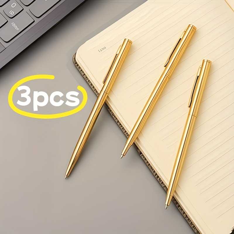 TEMU 3개 세트 고급 골든 스테인리스 스틸 볼펜 | 리트랙터블 + 미디엄 팁 | 부드러운 필기감 & 번짐 없음 | 14세 이상 성인용 | 포멀한 선물 박스 포함 | 필기 동반자!, 전문 글쓰기,사무용품,스타일리시 액세서리,세련된 선물,부드러운 잉크 흐름,중간 펜촉,리트랙터블 펜,학생들,전문가용