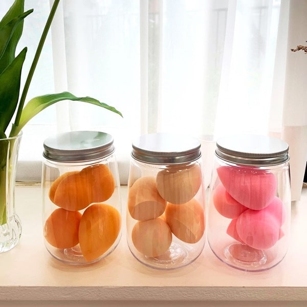 메이크업 쿠션 퍼프 파우더 스펀지 수납 정리 회전 케이스 투명 보관함