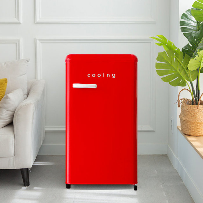 쿠잉 레트로 미니냉장고 REF-90CN 레드 소형 원룸 사무실 원도어 작은 슬림 가정용