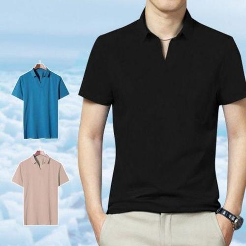 [에이치플러스몰]남자 여름 쿨론 카라 반팔티 무지 오픈카라티 단체티 반티