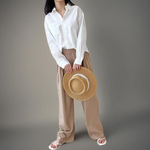 여름 린넨 와이드 마바지 여성 쿨링 무지 밴딩 팬츠