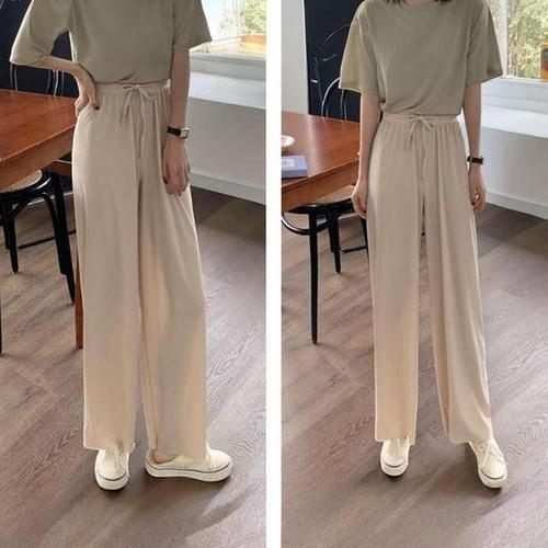 여성 여름 밴딩 골지 쿨링 와이드 팬츠 홈웨어 통바지