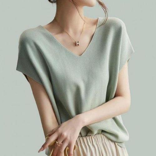 [에이치플러스몰]여성 여름 브이넥 쿨 반팔 니트 티 셔츠