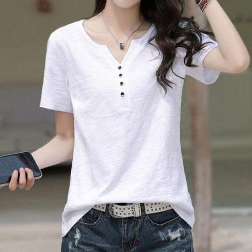 [에이치플러스몰]여름 봄 캐주얼 여자 반팔티 필수템 브이넥 쿨소재 골