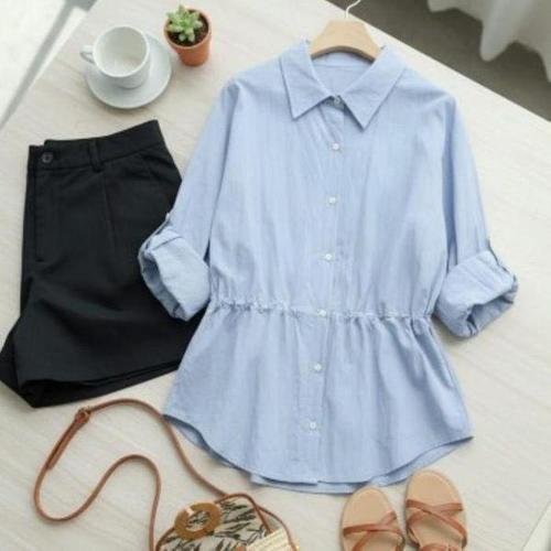 [옷자락] 여성 심플 봄 여름 쿨 스트링 기본 셔츠
