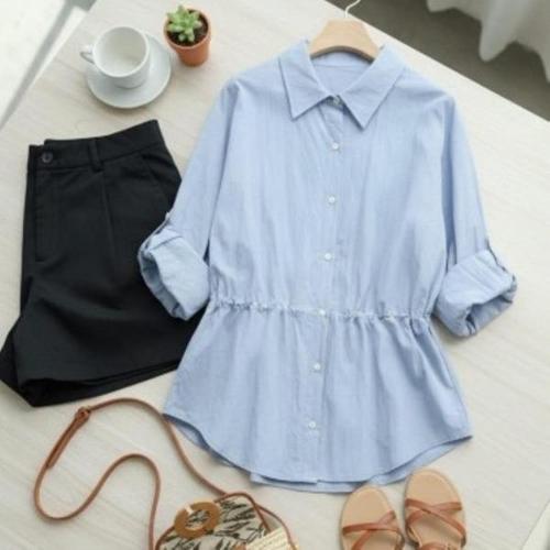 [셀러허브_여성트랜드패션]여성 드로우코드 SS 베이직 미니멀리즘 쿨 셔츠