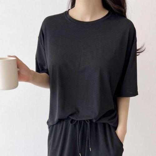 [셀러허브_여성트랜드패션]깔끔 반팔티셔츠 쿨 무지티 라운드넥 여름 아이스