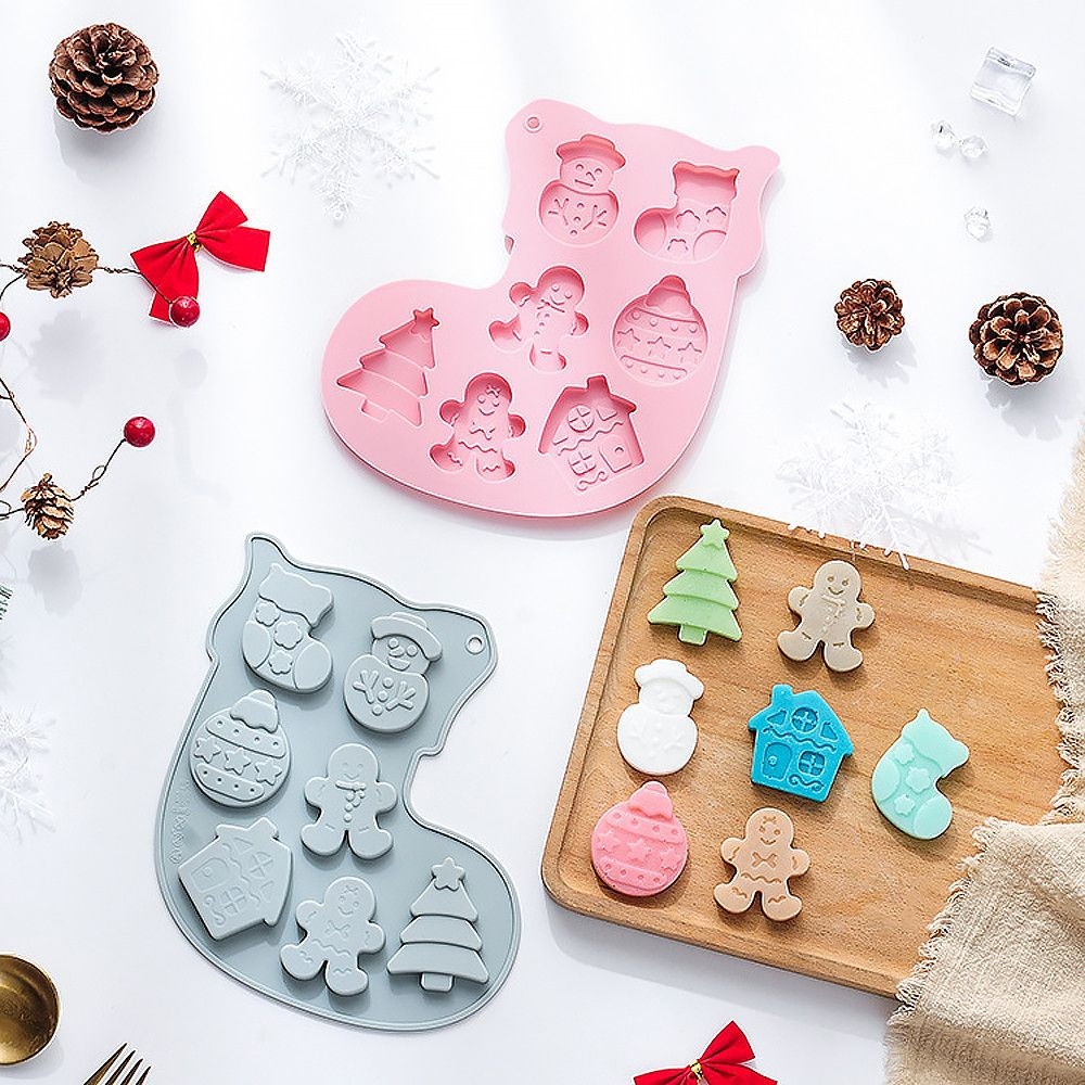 크리스마스 식품 몰드 크리스마스양말 7구 실리콘 초콜릿틀 홈베이킹