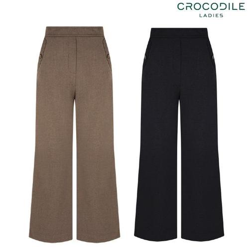 크로커다일레이디 여성용 밴딩 포인트 히든버튼 와이드팬츠 CLBW-PT102