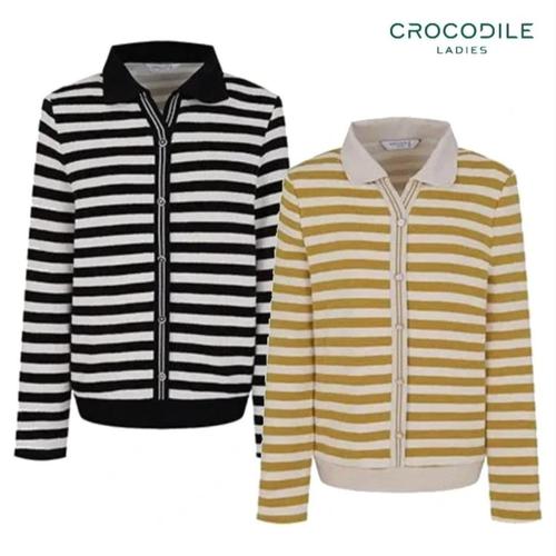 [크로커다일 레이디]카라 배색 가디건형 니트 CLEWSW205