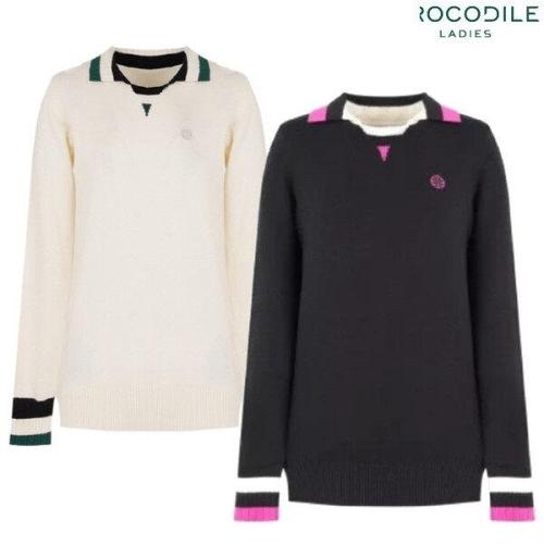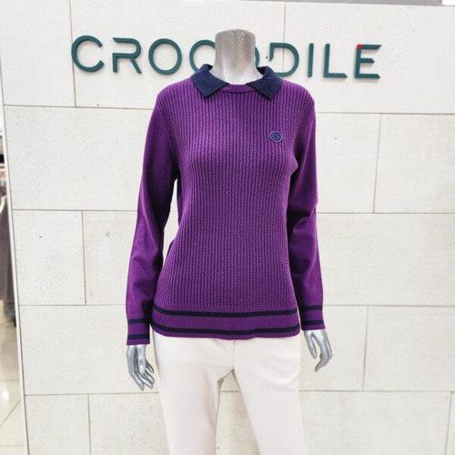 [크로커다일레이디] 크로커다일레이디 케으블 조직 카라변형 니트 티셔츠CLDWSW205