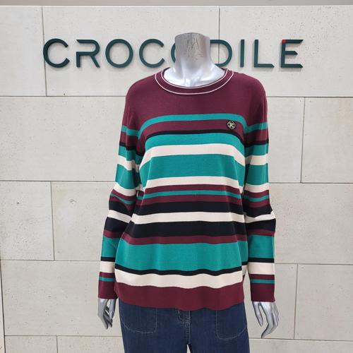[크로커다일레이디]스트라이프 라운드 니트 티셔츠CLEWSW202-WI_BP