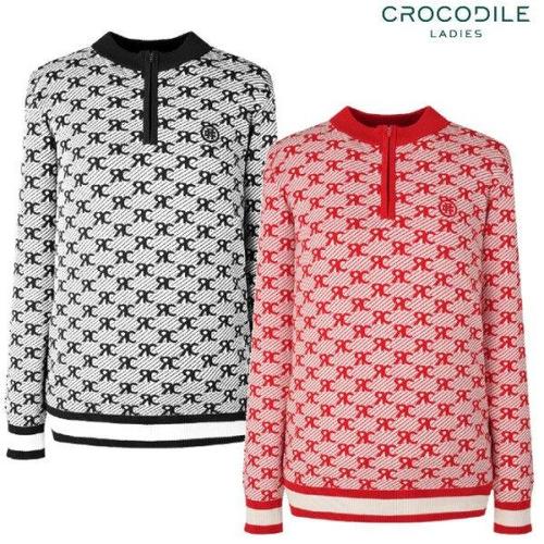 [크로커다일레이디](CLDWSW206) 로고 자가드 반집업 니트 티셔츠_GN