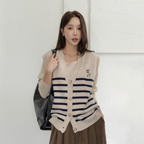 가무이 여성 베스트 단추 간절기 니트 조끼 D103