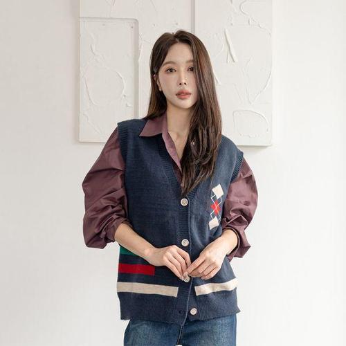 바바 브이넥 버튼 니트조끼 레이어드 니트베스트
