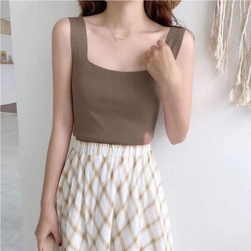 [셀러허브_여성트랜드패션]여자 크롭 민소매 나시 이너 스퀘어넥 탱크탑 티셔츠