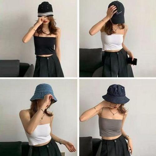 튜브탑 끈나시 캡내장 반팔티 크롭 나시 티셔츠 ST502 WD7DD87