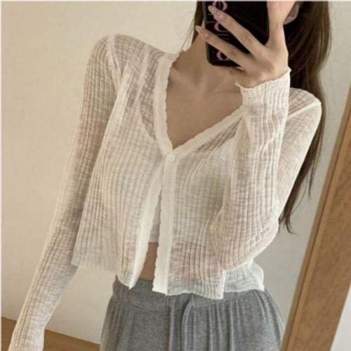 [에이치플러스몰]니트 볼레로 여름 크롭 그물 시스루 망사 가디건