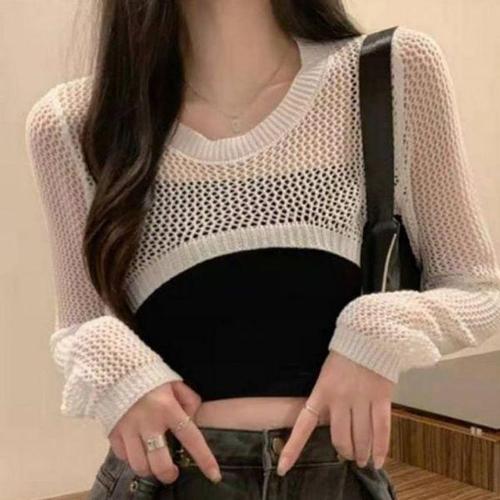 [에이치플러스몰]여름 베이직 여성 데일리 크롭 올데이 그물 심플 니트