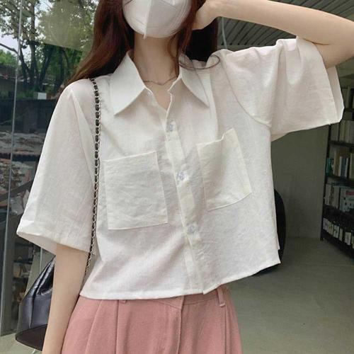 [에이치플러스몰]여름 반팔 셔츠 남방 루즈핏 여성 린넨 캐주얼 크롭