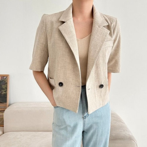 플러리싱 / 반팔 린넨 더블 세미크롭 자켓 플러리싱