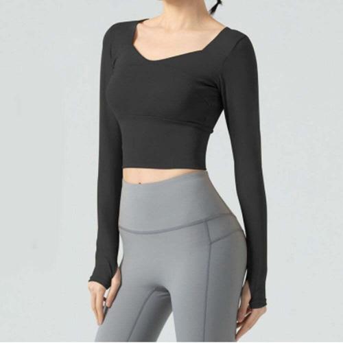 [셀럽하우스]여성 PGIK8759 패드 내장 슬림 크롭 긴팔티 헬스복 요가복 상의