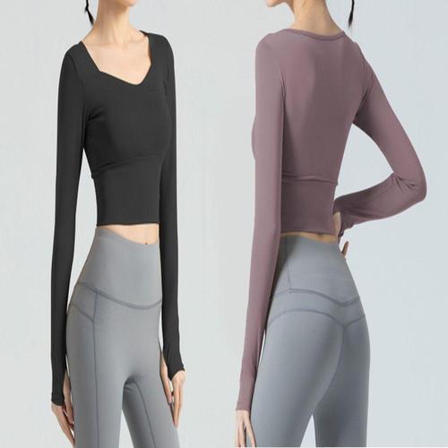 [셀럽하우스]여성 SESU9392 스퀘어넥 크롭 긴팔 요가복 레깅스 상하의 세트