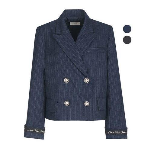 [비비드시크릿가너]여성 스트라이프 소매레터링 봄가을 크롭 정장 자켓