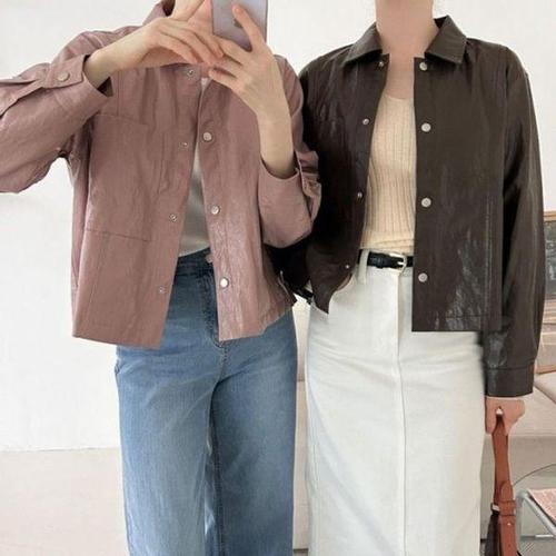 [에이치플러스몰]세미크롭레더 와이셔츠 점퍼 세미정장 유니크 데일리 자켓