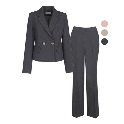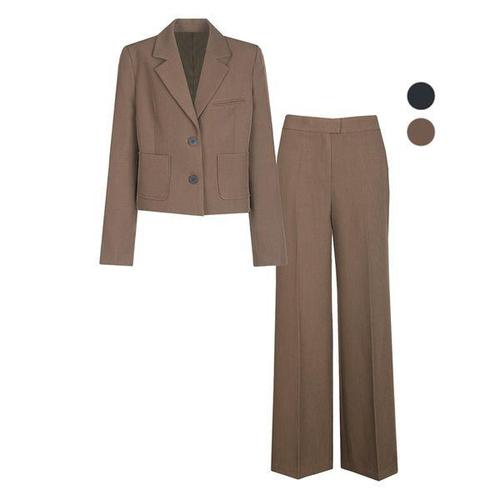 [비비드시크릿가너]SET 여성 월넛 크롭 봄가을 정장 자켓+통팬츠 세트
