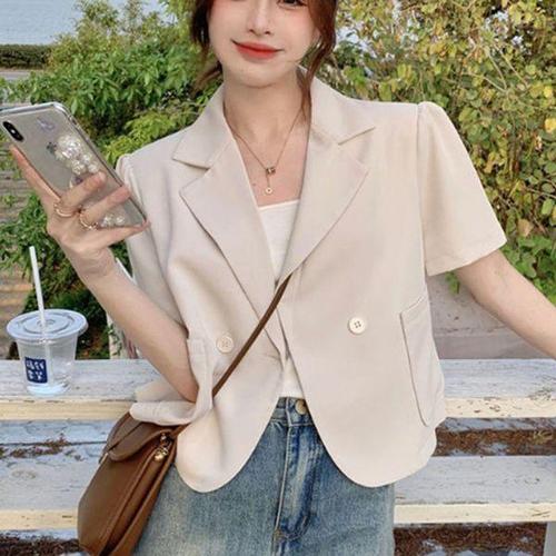 [에이치플러스몰]여성 크롭 원버튼 반팔 마이 1P 퍼프 소매 자켓 정장