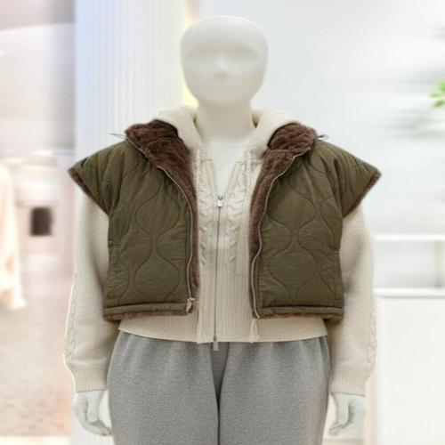 [스타일리쉬바이피클]양면 크롭 스트링 집업 하이넥 퀼팅 퍼 베스트 조끼