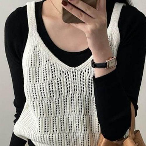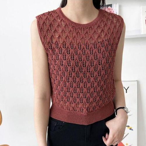 [에이치플러스몰]여름 니트 조끼 여성 크롭 펀칭 넷베스트 그물 데일리
