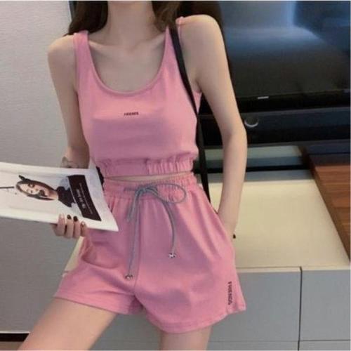여성용 허리밴드 운동 하프팬츠 크롭탑 세트