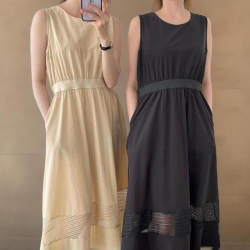 [신상오픈런]여성 민소매 카라넥 크롭탑 롱 원피스 세트 (33265440)