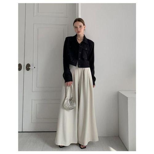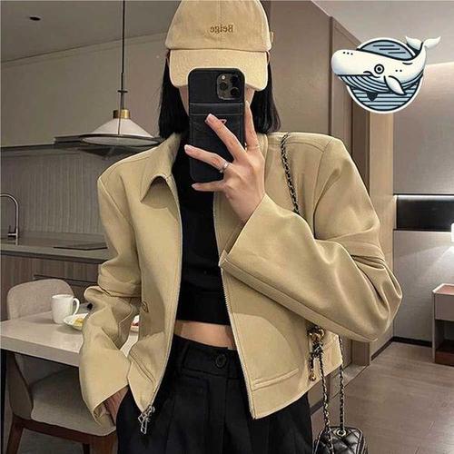 [에이치플러스몰]여성 크롭 핏 카라넥 블루종 트렌디 봄가을
